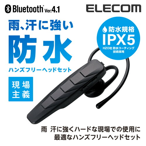 エレコム 防水 Bluetooth ワイヤレス ヘッドセット ブルートゥース 高音質 通話対応 2台同時待受けマルチポイント対応 Bluetooth4.1 ブラック LBT-HS50WPPCBK