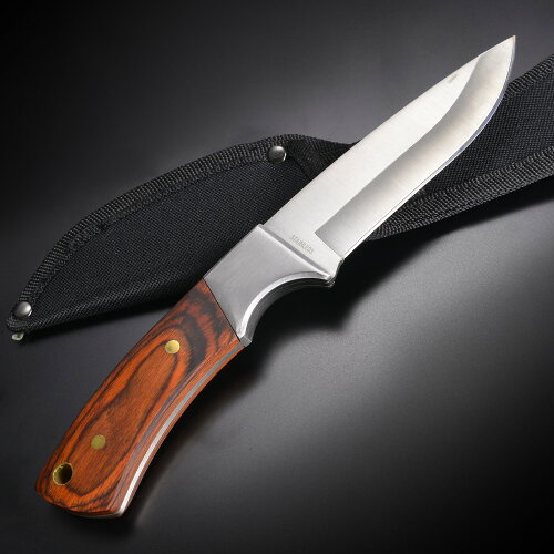 アウトドアナイフ フルタング Hunter 木製ハンドル FULL TANG ハンター ウッドハンドル 210915 登山 魚釣り フィッシングナイフ キャンプナイフ ハンティングナイフ 狩猟 サバイバルナイフ シースナイフ 刃物 渓流ナイフ