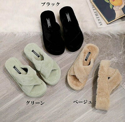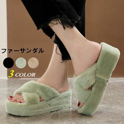 【22.0/22.5/23/23.5/24/24.5】ファーサンダル サンダル レディース もこもこ サンダル ファーサンダル ふわふわ サンダル おしゃれ コンフォートサンダル フェイクファー 厚底 ウェッジソール サマー 春 夏 秋 冬 大きいサイズ ベージュ グリーン ブラック